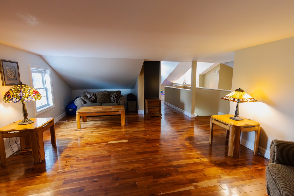 - 2 bathrooms, with a third roughed-in in the high-ceiling basement